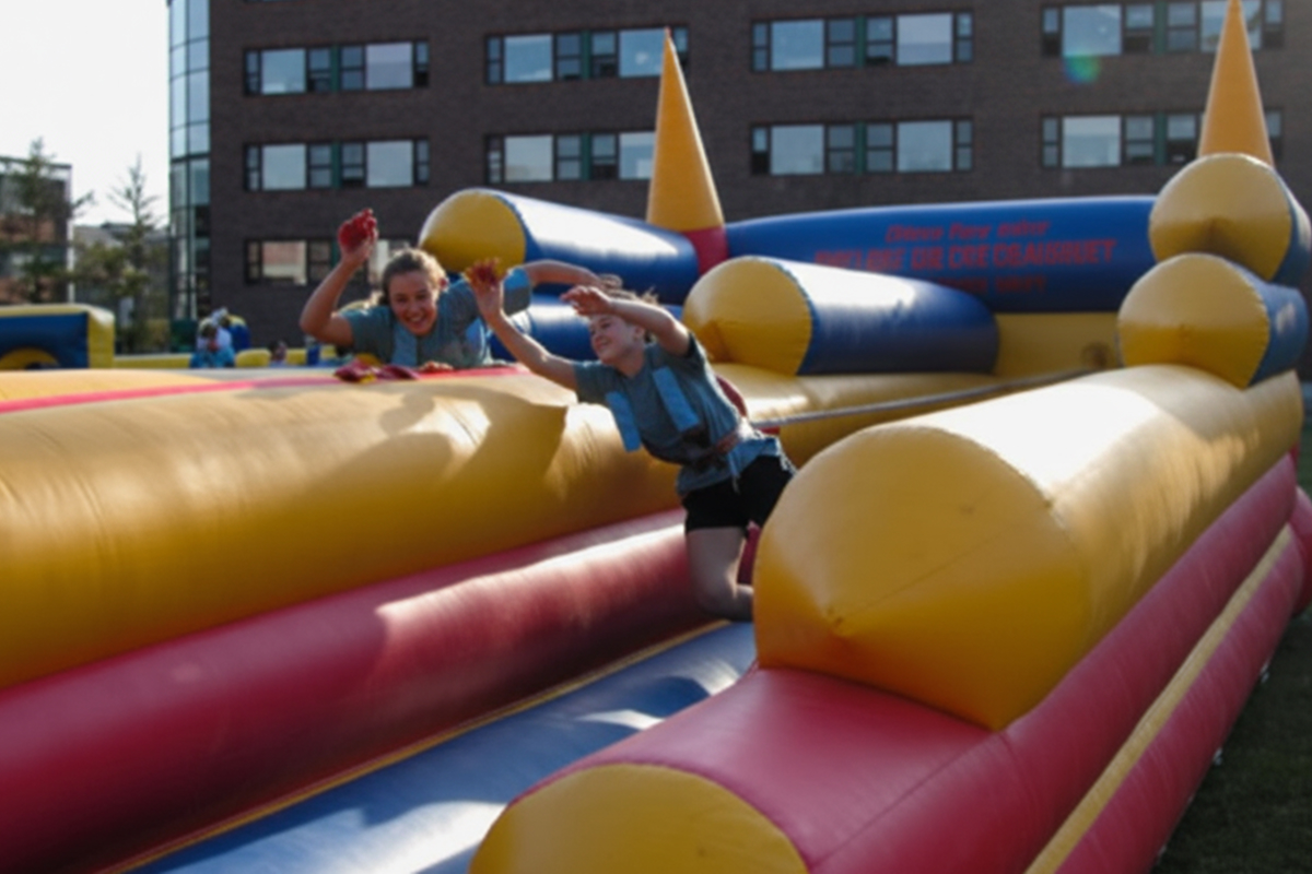Not so easy on an inflatable version, but sure does create lots of laughs and fun! Great for High School and College events!